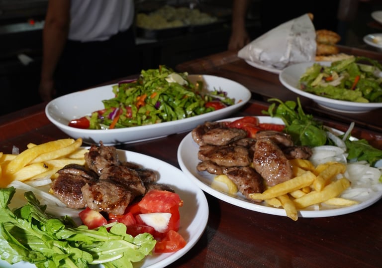 Izgara balık çeşitleri ve köfteler, odun ateşinde pişirilmiş lezzetler.