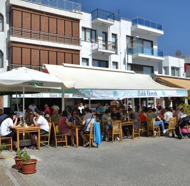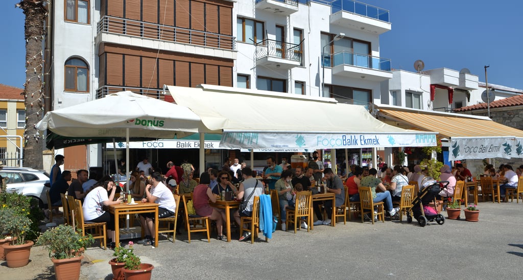 Eski Foça sahilinde balık ekmek keyfi ve denizden taze lezzetler..